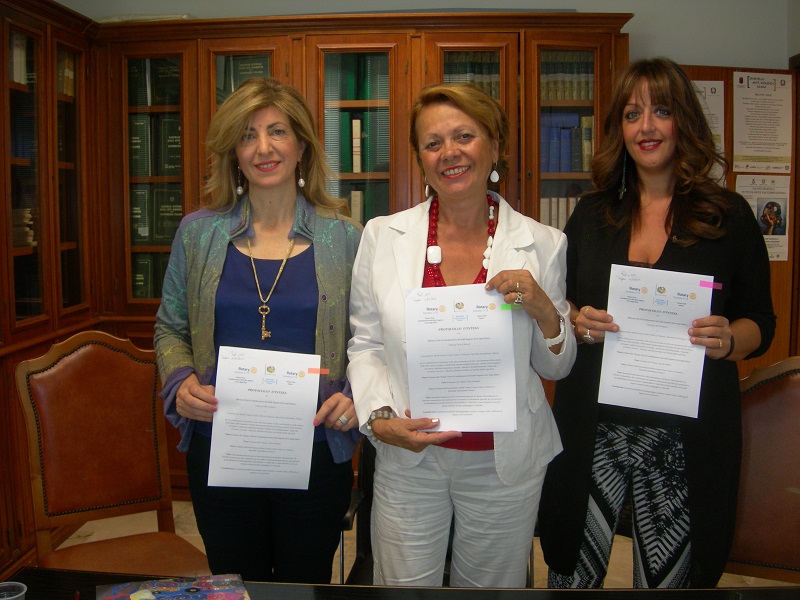 Siglato stamattina presso la sede del Tribunale di Trapani, il protocollo d’intesa “Insieme scegliamo la pace” tra il Rotary Club di Castellammare del Golfo , il Rotary Club di Salemi, l’Associazione Diritti Umani contro tutte le Violenze e lo sportello antiviolenza “Diana” con la Presidente Aurora Ranno. A siglare il protocollo, mediante il quale verranno realizzate iniziative volte alla promozione ed alla valorizzazione della cultura della pace e della solidarietà, i rispettivi presidenti dei R.C., Anna Maria De Blasi e Doriana Licata.
