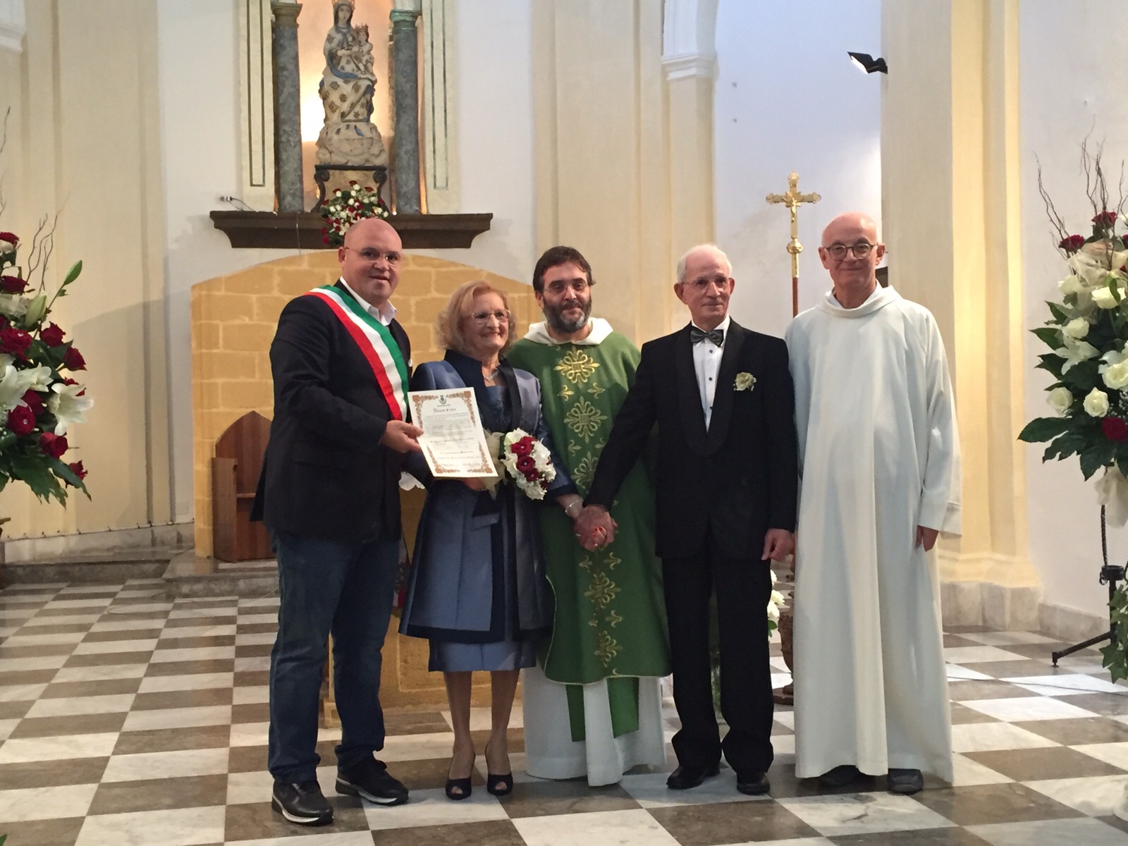 P¬resente Vito Gancitano, Presidente del Consiglio Comunale, che ha portato agli sposi¬ il saluto e gli auguri della nostra com¬unità ed ha omaggiato i festeggiati con una pergamena celebrativa.