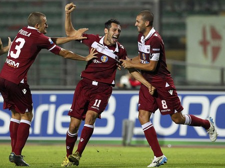 Trapani: Nordi, Garufo, Pagliarulo, Terlizzi, Rizzato, Basso, Pirrone, Ciaramitaro, Nizzetto (80’ Caccetta), Gambino (70’ Abate), Mancosu. (A disp. Marcone, Daì, Priola, Pacilli, Vitale, Feola, Vettraino). All. Boscaglia (in panchina Di Gaetano) Padova: Mazzoni, Laczko (55’ Melchiorri), Benedetti, Carini, Almici (70’ Santacroce), Osuji, Musacci, Moretti, Improta (70’ Vantaggiato), Rocchi, Pasquato. (A disp. Nocchi, Ceccarelli, Rosina, Cuffa, Radrezza, Diakite). All. Mutti Reti: 2’ Basso (T), 17’ Mancosu (T), 77’ Rocchi (P) Arbitro: Ciampi; assistenti Tegoni e Calò Note: Serata piovosa, campo pesante. Spettatori 5.000 circa. Ammoniti Laczko, Almici (P); Ciaramitaro (T). Corner 6-1 per il Padova La cronaca. Tempo da lupi al Provinciale, vento gelido e pioggia hanno fatto da cornice alla prima gara del 2014 del campionato di serie B. Il Trapani ha iniziato il nuovo anno ed il girone di ritorno allo stesso modo con cui aveva chiuso il 2013 ed il girone d’andata, con un risultato positivo. Il successo ottenuto contro il Padova, il terzo su tre gare disputate in questa stagione contro la squadra veneta, dona alla squadra di Boscaglia (assente in panchina per la squalifica rimediata a seguito dell’espulsione di Brescia e sostituito da Ciccio Di Gaetano) tre punti preziosi e meritati. I granata sono stati bravissimi a mettere subito la partita in discesa nel primo tempo e nella parte finale del match sono riusciti anche a complicarsi la vita. Ma è andata bene ed è quello che conta. La gara, come detto, si è messa subito nel migliore dei modi. Al 2’ infatti c’è un lancio calibrato di Rizzato che innesca Gambino sulla fascia sinistra, il cross al centro del giocatore italo-tedesco non trova Mancosu ma in compenso alle spalle del bomber irrompe Basso il cui secco diagonale si insacca alle spalle di Mazzoni per l’1-0. Al 4’ il Trapani potrebbe addirittura raddoppiare, stavolta è Nizzetto a lanciare Gambino che entra in area da destra e lascia partire un tiro che scheggia la traversa prima di perdersi sul fondo. Il Padova cerca di controbattere con lanci lunghi in direzione di Rocchi e Pasquato ma la difesa granata fa buona guardia. Di ben altro peso le azioni offensive dei locali, al 17’ dal piede di Nizzetto parte una palla filtrante per Mancosu che vince un rimpallo e si invola verso l’area patavina lasciando sul posto Benedetti, mette a sedere il portiere avversario con una finta e deposita la sfera nella rete sguarnita facendo esplodere per la seconda volta il Provinciale. L’uno-due del Trapani rischia di mandare i padovani in tilt, ma la squadra di Mutti è dotata di orgoglio e qualità, come al 19’ quando Pasquato riesce a liberarsi per il tiro e ci vuole il miglior Nordi per mantenere imbattuta la porta granata. E’ comunque il Trapani che continua a fare la partita e non sembra pago del doppio vantaggio anche se i primi 45’ si concludono con un’azione pericolosissima del Padova partita dal piede di Rocchi, rifinita da Osuji e conclusa malissimo in piena area da Pasquato che da posizione favorevole svirgola la sfera lasciano partire una conclusione inguardabile. Il Trapani inizia in avanti la ripresa: al 54’ Basso batte un calcio di punizione da posizione decentrata sulla sinistra, un destro velenoso che costringe Mazzoni ad uscire dai pali e respingere a pugni uniti, sulla ribattutta Ciaramitaro tenta la soluzione dalla distanza ma la palla incoccia la gamba di un difensore del Padova che riesce poi ad allontanare. I ritmi poi finiscono inesorabilmente per calare, considerato il primo tempo giocato in maniera frenetica soprattutto dal Trapani ed il campo reso pesante dalla pioggia. I biancoscudati tentano di riaprire il match ed i granata sono lesti a ripartire come al 74’ quando Abate, subentrato pochi minuti prima a Gambino, conquista palla a centrocampo e si invola in una progressione sontuosa che lo porta in area di rigore. Stranamente il centravanti pecca di egoismo, invece di servire Basso liberissimo a sinistra tenta il numero personale con una conclusione a girare che termina decisamente fuori bersaglio. Il Trapani si divora così il terzo gol e viene punito 3’ più tardi dall’uomo di maggiore esperienza dell’attacco veneto, l’ex bomber della Lazio Tommaso Rocchi che viene servito da Pasquato da due passi da Nordi, evita l’uscita del portiere granata e spinge la palla in fondo al sacco. Il Padova ha dunque accorciato le distanze e si butta in un disperato forcing nel tentativo di acciuffare un clamoroso pareggio ma il miracolo non arriva, la difesa del Trapani è abile a controllare le sfuriate avversarie e tutta la squadra festeggia sul prato bagnatissimo del Provinciale la sua prima vittoria del 2014. In attesa delle altre partite i granata sono in piena zona play off.