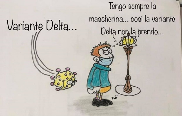 Vignetta: La Variante detta Delta è la più pericolosa variante che desta più preoccupazioni.