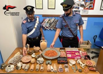 I Carabinieri della Compagnia di Trapani, durante i controlli a persone sottoposte a misure restrittive alternative alla detenzione in carcere, hanno denunciato tre fratelli ericini di 62, 54 e 50 anni per i reati di ricettazione di beni culturali e detenzione illegale di animali in via di estinzione. I Carabinieri, durante la verifica della presenza in casa di uno dei tre, in atto sottoposto alla detenzione domiciliare, hanno notato nella casa alcuni manufatti, posizionati ad ornamento dell’appartamento, di interesse archeologico decidendo cosi di eseguire una più estesa perquisizione all’abitazione. All’esito dell’attività: - sono stati complessivamente rinvenuti e sottoposti a sequestro: • 31 manufatti in terracotta e bronzo d’interesse archeologico; • 2 esemplari di tartaruga (testudo Hermanni) illegalmente detenuti; • circa 2 kg di corallo rosso illegalmente detenuto; • 5 gr. grammi di sostanza stupefacente tipo hashish e marijuana. - i tre fratelli sono stati denunciati (in virtù degli illeciti penali), nonché segnalati per gli illeciti amministrativi in materia di pesca e acquacoltura e di stupefacenti.