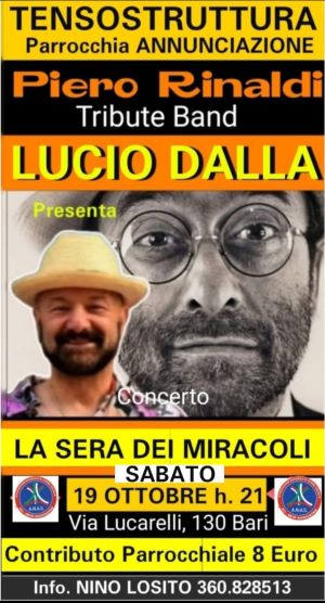 L’APS Annunciazione PRESENTA IL CONCERTO “LA SERA DEI MIRACOLI “ con Piero Rinaldi Tribute Band a Lucio Dalla.