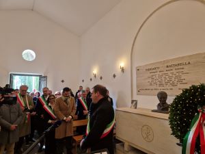 Dopo gli squilli di tromba ed il silenzio a cura della banda musicale “Città di Castellammare”, la preghiera e la benedizione del Vescovo di Trapani, Pietro Maria Fragnelli, all’interno della chiesetta cimiteriale dove, di fronte la tomba di Piersanti Mattarella, si trova quella di Bernardo, padre di Piersanti e del Presidente della Repubblica, Sergio Mattarella.