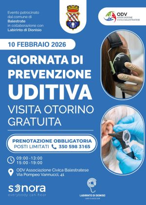 L’evento, patrocinato dal Comune di Balestrate e realizzato in collaborazione con Labirinto di Dionisio e ODV Associazione Civica Balestratese, offre la possibilità di effettuare una visita otorinolaringoiatrica gratuita, un controllo semplice ma molto importante per individuare eventuali problemi dell’udito.