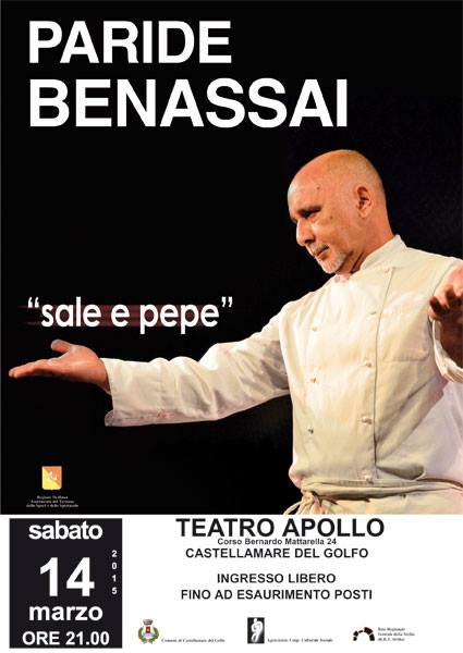 Domenica Giovanni Cacioppo con “Vita da bar”. “Sale e pepe”: è lo spettacolo teatrale di Paride Benassai che andrà in scena al teatro Apollo Anton Rocco Guadagno, sabato 14 marzo alle ore 21. L’ingresso allo spettacolo, organizzato dall’assessorato al Turismo, è libero (fino ad esaurimento posti). Nello spettacolo Paride Benassai “racconta dinanzi a fornelli, pentole, ingredienti, odori, erbe e spezie il “culto culinario”; il palcoscenico diventa una tavola ed il pubblico i commensali. E’ un divertente viaggio di un gourmet nella Palermo antica, per raccontare attraverso il cibo l’identità popolare palermitana”. «Si è rivelata positiva la nostra volontà, in collaborazione con la Pro loco, di proporre eventi culturali e spettacoli teatrali nel corso dell’inverno - affermano il sindaco Nicolò Coppola e l’assessore al Turismo Rossana Agugliaro-. Il teatro Apollo Anton Rocco Guadagno, per il secondo anno consecutivo, ha visto una stagione artistica completa e di buona qualità, accogliendo il favore dei cittadini, che hanno partecipato con interesse alle diverse tipologie di spettacoli finora proposti e che continueranno fino a primavera inoltrata, dimostrando che attività culturali e spettacoli nella nostra città trovano consenso non solamente nel periodo estivo». Dopo la sperimentazione avviata l’anno scorso, nel piccolo teatro di 198 posti, è stata riproposta la stagione artistica invernale. Il cartellone del teatro Apollo (intitolato al maestro Anton Rocco Guadagno, nato a Castellammare nel 1923 e morto nel 2002 a Vienna), per la stagione teatrale organizzata dal Comune in collaborazione con la Pro loco, prevede dodici spettacoli, avviati a dicembre e che si concluderanno il 26 aprile, oltre ad alcuni spettacoli proposti al di fuori del cartellone, come quello di Paride Benassai. In programma domenica 15 marzo, Giovanni Cacioppo con “Vita da bar”, il 29 marzo la Filodrammatica del Golfo con “Un caso curioso”, il 12 aprile Vicaria “Omaggio a De Andrè”; il 19 aprile l’associazione Triquetra con “Quel tesoro di mia suocera”, per finire il 26 aprile con Salvo Piparo e il suo “Cuntastorie”. Portavoce del Sindaco: Annalisa Ferrante