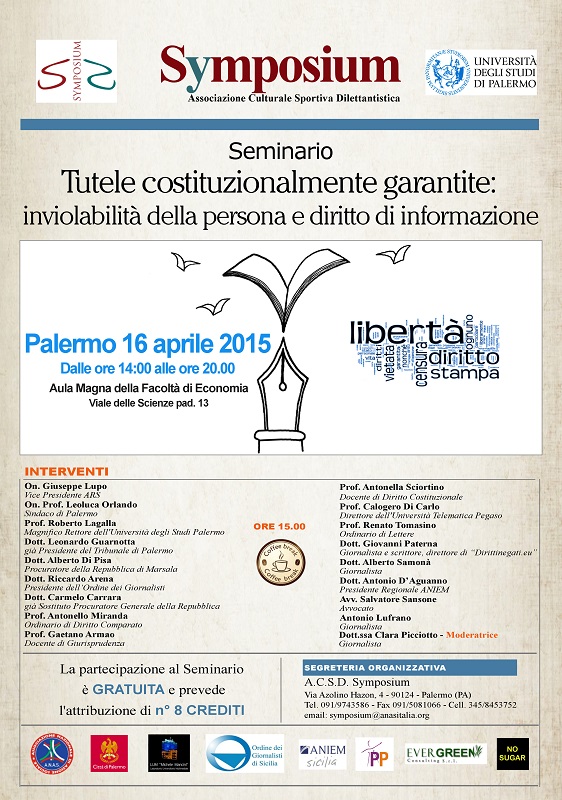 SYMPOSIUM - SEMINARIO: TUTELE COSTITUZIONALMENTE GARANTITE: INVIOLABILITA´ DELLA PERSONA E DIRITTO DI INFORMAZIONE
