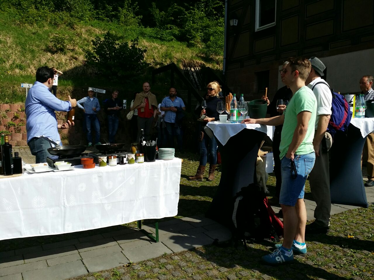 «Ha riscosso un ampio successo di pubblico la manifestazione Weinwanderung, che si è tenuta ieri (domenica 10 maggio) a Marburg, presso Francoforte sul Meno. L’evento eno-gastronomico, organizzato in collaborazione con la Agrosection di Marsala, è consistito in una passeggiata di otto chilometri nei boschi dell´Assia. Ogni due chilometri il gruppo dei visitatori si fermava per degustare i prodotti tipici provenienti dal territorio del Gal Elimos, quali pasta, conserve dolci e salate, olio e, soprattutto, i vini sapientemente abbinati dal sommelier Pietro D´Alto. La sera, invece, si cenava direttamente a ridosso del fiume con grigliata e dolci siciliani. Il numeroso pubblico, che ha avuto anche la possibilità di acquistare i prodotti in vendita permanente presso il ristorante e Wine Pub Vinopolio di Marburg, ha apprezzato la qualità dei prodotti, sottolineandone in diverse occasioni la loro bontà. Per il Gal Elimos sono stati presenti alla manifestazione Maurilio Caracci (Direttore Marketing) e Rocco Lima (Direttore del Piano), secondo il quale «questo è il primo risultato dell´educational realizzato con i buyers tedeschi nello scorso mese di aprile. Siamo riusciti a destare, infatti, un grande interesse per la commercializzazione dei nostri prodotti ed il loro inserimento nella distribuzione tedesca di qualità». Si allegano alcune foto della manifestazione. Calatafimi Segesta lì, 11 maggio 2015. Dott. Fabrizio Fonte Addetto stampa