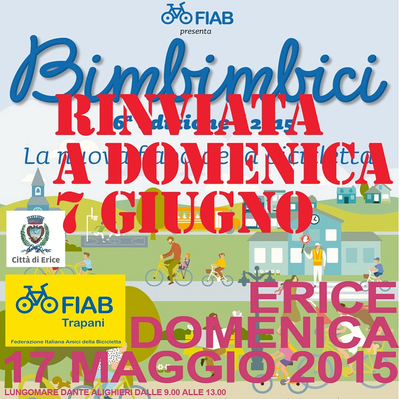 A causa delle avverse condizioni meteo previste per domani mattina, la prevista manifestazione nazionale Bimbimbici, promossa da FIAB Trapani, Federazione Nazionale Amici della Bicicletta con il patrocinio e la collaborazione dell’Amministrazione Comunale di Erice,