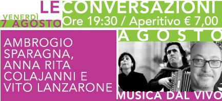 "Conversazioni", nell’ambito della rassegna di arte, musica e letteratura “L’Arabafenice”, in programma Venerdì 7 agosto alle 19,30 presso la Funtanazza, Monte Bonifato incontro musicale con Ambrogio Sparagna, Anna Rita Colajanni e Vito Lanzarone.
