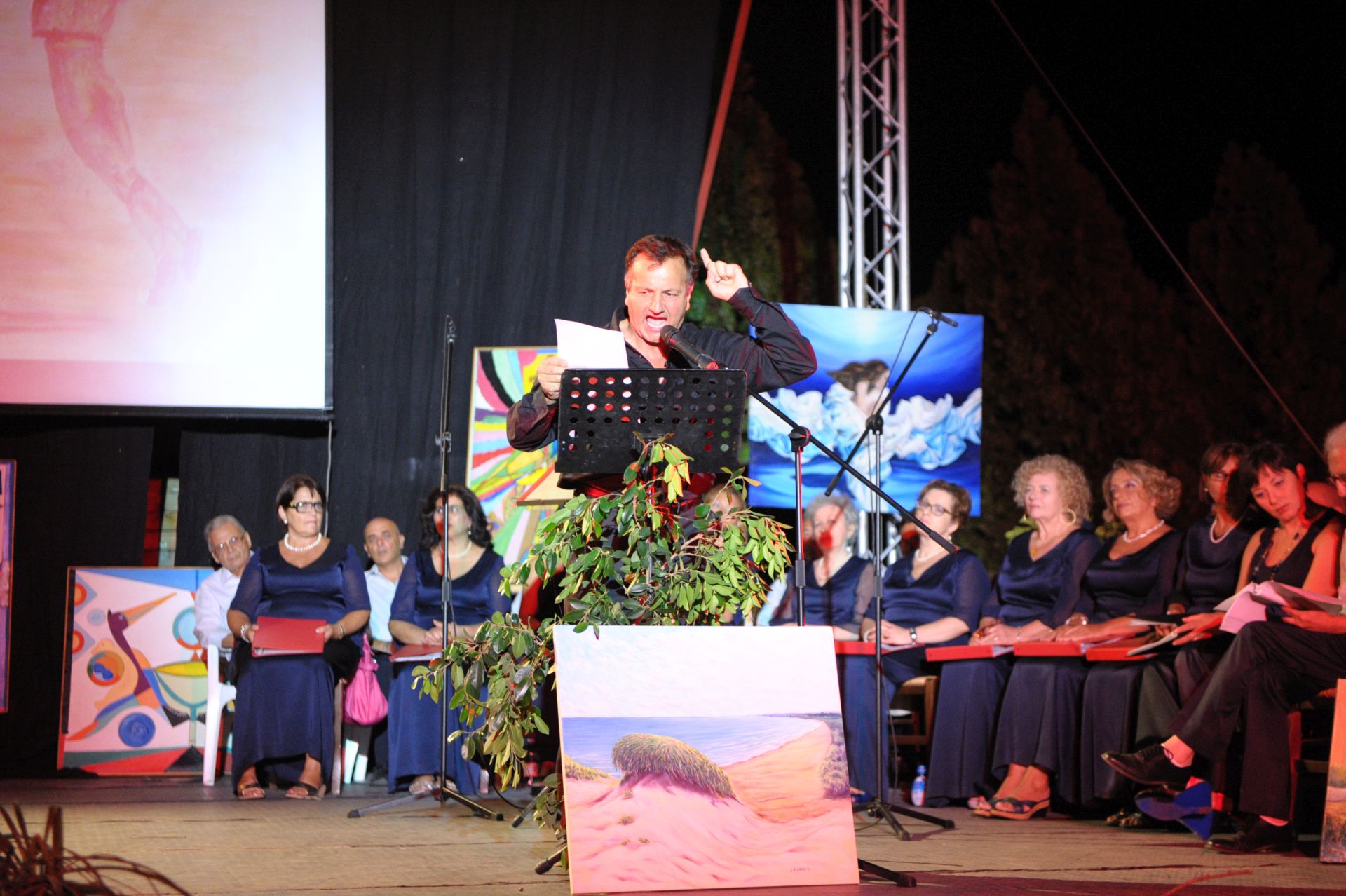 Venerdì sera la città di Rosolini è stata nuovamente scelta - dopo il successo de “Il Viaggio Dantesco” all’ Eremo di Croce Santa - dall’attore-regista Agostino De Angelis per divenire applaudito palcoscenico di uno dei suoi spettacoli. Lo Spettacolo Teatrale, stavolta Multimediale, ha riempito la platea dell’ Anfiteatro Parco Giovanni Paolo II “Verde a Valle” con questo viaggio nella Storia, Letteratura, Arte, Musica e Tradizioni, andato in scena in Prima Nazionale 2015, con il patrocinio della Camera dei Deputati e per interessamento della Deputata Nazionale Maria Marzana e del collaboratore parlamentare Giuseppe Ricchi. Il pubblico, accorso numeroso, ha potuto ripercorrere, con frammenti di prosa e poesia tratti dalle opere dei grandi autori del Novecento Siciliano, Italiano ed Europeo, alcuni dei momenti più entusiasmanti di questo secolo. Tra questi quelli degli indimenticati Quasimodo, Vittorini, Sciascia, Verga ed altri. Si è potuto godere dell’ alternanza di una pluralità di forme artistiche e linguaggi che andava dall’ intensa interpretazione di De Angelis, Marco Scuotto, Angelo Abela, Sara Calvo, Mara Marzana, Sara Spatola, alla suggestiva musica dal vivo della chitarra di Valerio Massaro e del polistrumentista Luigi Calvo, al nostalgico canto tenorile di Dario Adamo e dell’Associazione Corale Polifonica ”Libere Armonie” del Maestro Emanuele Calvo. Le tele pittoriche e le sculture in scena così come la video proiezione di immagini hanno insieme alle calde luci arricchito lo scenario. L’evento, organizzato dalle Associazioni Extramoenia e ArchéoTheatron e promosso dal Comune di Rosolini, è stato accolto con rinnovato plauso dal Sindaco Corrado Calvo. La Deputata Marzana, ringraziando il Maestro De Angelis, ha espresso con orgoglio il suo entusiasmo nel veder omaggiati proprio quegli autori sulla cui rivalutazione, ai fini dello studio nelle scuole, ha posto l’attenzione proprio in Parlamento. La serata, presentata da Giusi Lisi, si è poi conclusa con una degustazione di eccellenze eno-gastronomiche offerta dai produttori. La fotografia di scena è stata a cura di Valerio Faccini