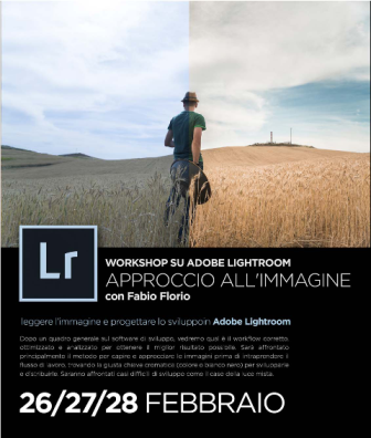 L’Associazione i Colori della Vita ospiterà dal 26 febbraio a Trapani, un workshop tenuto da Fabio Florio, fotografo professionista, che condividerà i suoi metodi di sviluppo delle immagini attraverso l’uso del software Lightroom di Adobe. Le lezioni saranno tenute il 26, 27 e 28 febbraio 2016 presso i locali dell’Aics nel Centro Sportivo Falcone Borsellino (ex Campo Bianco ) di Erice. Per iscriversi inviare una mail all’indirizzo segreteria@icoloridellavitatp.it.Per info contattare Ass.ne I COLORI DELLA VITA - ARTURO SAFINA, email: segreteria@icoloridellavitatp.it - TEL. +39. 3477525555. Adobe Lightroom ad oggi è uno dei software di sviluppo maggiormente usati nel mercato fotografico e oggi ogni fotografo deve necessariamente conoscerne le basi per poter cominciare a post produrre le proprie fotografie, gestire il proprio archivio e distribuire le proprie immagini. Durante il workshop sarà spiegato come utilizzare il software al massimo ottimizzando il proprio workflow e velocizzando i tempi di consegna dei servizi fotografici. Info e costi nel programma disponibile per il download sul sito www.icoloridellavitatp.it. Fabio Florio ha costruito la sua professionalità attraverso un percorso estraneo alla formazione accademica. Dopo essersi occupato per anni di grafica pubblicitaria e comunicazione visiva, approda con passione alla fotografia. Incline, per indole e professione, alla cura del dettaglio e al valore del risultato, studia tecnica e storia della fotografia incontrando gli autori che orienteranno poi il suo stile. Dopo un lungo periodo di lavoro come assistente a vari fotografi professionisti, inizia la sperimentazione di un percorso personale. Dalla dialettica interiore fra il grafico e il fotografo, nasce una cifra estetica molto originale, sospesa fra reale e immaginario, raffigurazione e trasfigurazione. Uno stile unico ed intrigante, un viaggio aperto sui giochi dell’espressione.
