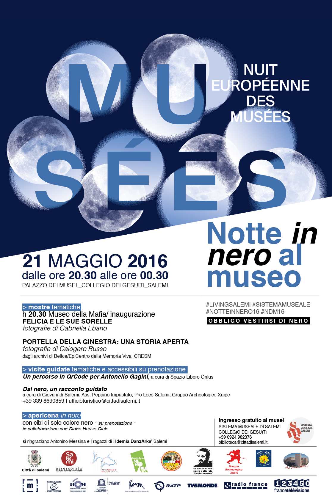 Sabato 21 maggio a partire dalle 20.30 l´Assessorato alla cultura, turismo e spettacolo della città di Salemi, in collaborazione con le associazioni Peppino Impastato, Giovani di Salemi, Gruppo archeologico XAIPE, Pro Loco, Spazio Libero Onlus, Hdemia Danzarkè e Stone House Club, aderiranno alla XII Notte internazionale dei musei. Un’occasione per vivere i musei in modalità notturna, con diverse e numerose attività. La serata, infatti, si aprirà con l´inaugurazione di due mostre fotografiche all´interno del Museo della Mafia: "FELICIA E LE SUE SORELLE di Gabriella Ebano". Gabriella Ebano conduce la sua ricerca, attraverso un sapiente uso del bianco e nero, verso l’assenza/presenza della famiglia dietro uno scatto al femminile. Ed è alla donna, alla moglie, alla madre, alla sorella o alla figlia che si concentra la sua attenzione. Donne che si lasciano fotografare per ricordare non solo i loro cari parenti, vittime della mafia, ma per ricordarci anche la loro forza, il loro coraggio, il loro impegno, e nonostante il loro dolore, continuano ad essere protagoniste di una terra difficile, quale è l’attuale Sicilia; "PORTELLA DELLA GINESTRA: UNA STORIA APERTA di Calogero Russo. Sedici fotografie in bianco e nero realizzate dal fotografo palermitano Calogero Russo, parte di un corpus fotografico più ampio sulle vittime delle lotte contadine e sulla strage di Portella della Ginestra. Il primo maggio del 1947 undici persone, tra cui due bambini, furono assassinate e più di trenta ferite durante la manifestazione dei lavoratori a Portella della Ginestra. Una settimana prima le elezioni erano state vinte dal partito comunista. Sessantotto anni dopo la storia è ancora aperta. Le fotografie sono state concesse da Belìce/EpiCentro della Memoria Viva_CRESM (Gibellina). A seguire si potrà scegliere di partecipare al percorso guidato e tematico al buio "Dal nero, un racconto guidato" a cura dell´Associazione Peppino Impastato, Giovani di Salemi, Pro Loco, Ass, XAIPE e Danz´Arkè e Stone House Club, che vi immergerà in un inedito racconto del museo partendo dal nero come elemento presente in tutte e quattro le sezioni museali, per poi concludersi con la degustazione di cibi di solo colore nero. Per partecipare al percorso occorre automunirsi di una torcia e di prenotarsi al numero: 339 8690859 oppure inviare una mail a ufficioturistico@cittadisalemi.it. Si potrà scegliere, altresì, di partecipare al percorso su "Antonello Gagini" curato dall´associazione Spazio Libero Onlus con l´utilizzo degli Qrcode. Una lettura delle opere conservate nella sezione di arte sacra su uno dei grandi artisti siciliani del Rinascimento italiano. Un percorso libero e accessibile. Per l´occasione è fatto obbligo ai partecipanti di indossare solo abiti di colore nero. Sarà possibile visitare le mostre sino al 26 giugno 2016, da martedì a domenica dalle ore 10.00 alle ore 13.00 e dalle ore 16 alle ore 19.00. Lunedì chiuso. __________________________________