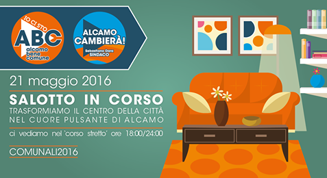 Sabato 21 maggio, dalle ore 18 alle ore 24, ABC trasforma il "corso stretto", centro della città e cuore pulsante della nostra Alcamo. Verrà realizzato un percorso ricreativo, in collaborazione con alcuni locali della zona, a misura di famiglie, bambini, nonni e ragazzi con tantissime sorprese, momenti ludico-didattici, esposizioni, musica e tanto altro: un vero salotto per mostrare il centro storico come vorremmo che fosse.