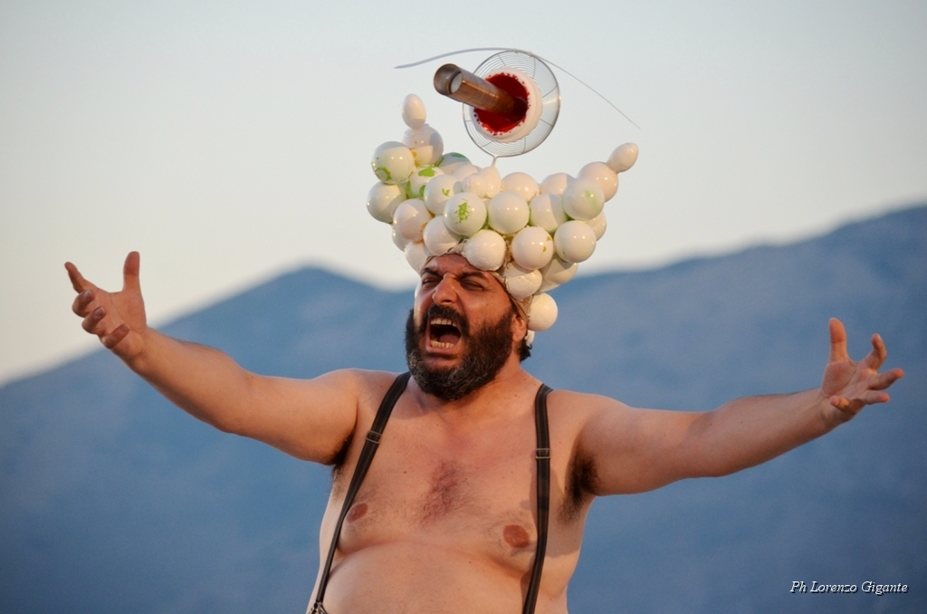 Già all’ingresso del Teatro gli spettatori sono stati catapultati all’interno del dramma satiresco: ad accoglierli infatti gli stessi attori già in abiti di scena. Semplice la struttura, invitante la parodia che Francesco Polizzi fa del celebre episodio tratto dall’Odissea. “Il Ciclope” è l’Opera di uno dei più grandi autori del teatro classico, Euripide, ´U Ciclopu´ qui a Segesta viene presentato nella traduzione in siciliano di Luigi Pirandello, ma un siciliano alla portata anche di chi non lo parla.