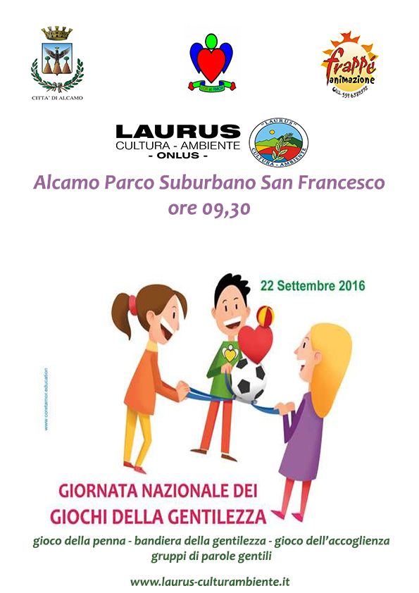 ALCAMO: 22 SETTEMBRE GIORNATA NAZIONALE DEI GIOCHI DELLA GENTILEZZA A PARTIRE DALLE 9.30, PARCO SUBURBANO SAN FRANCESCO