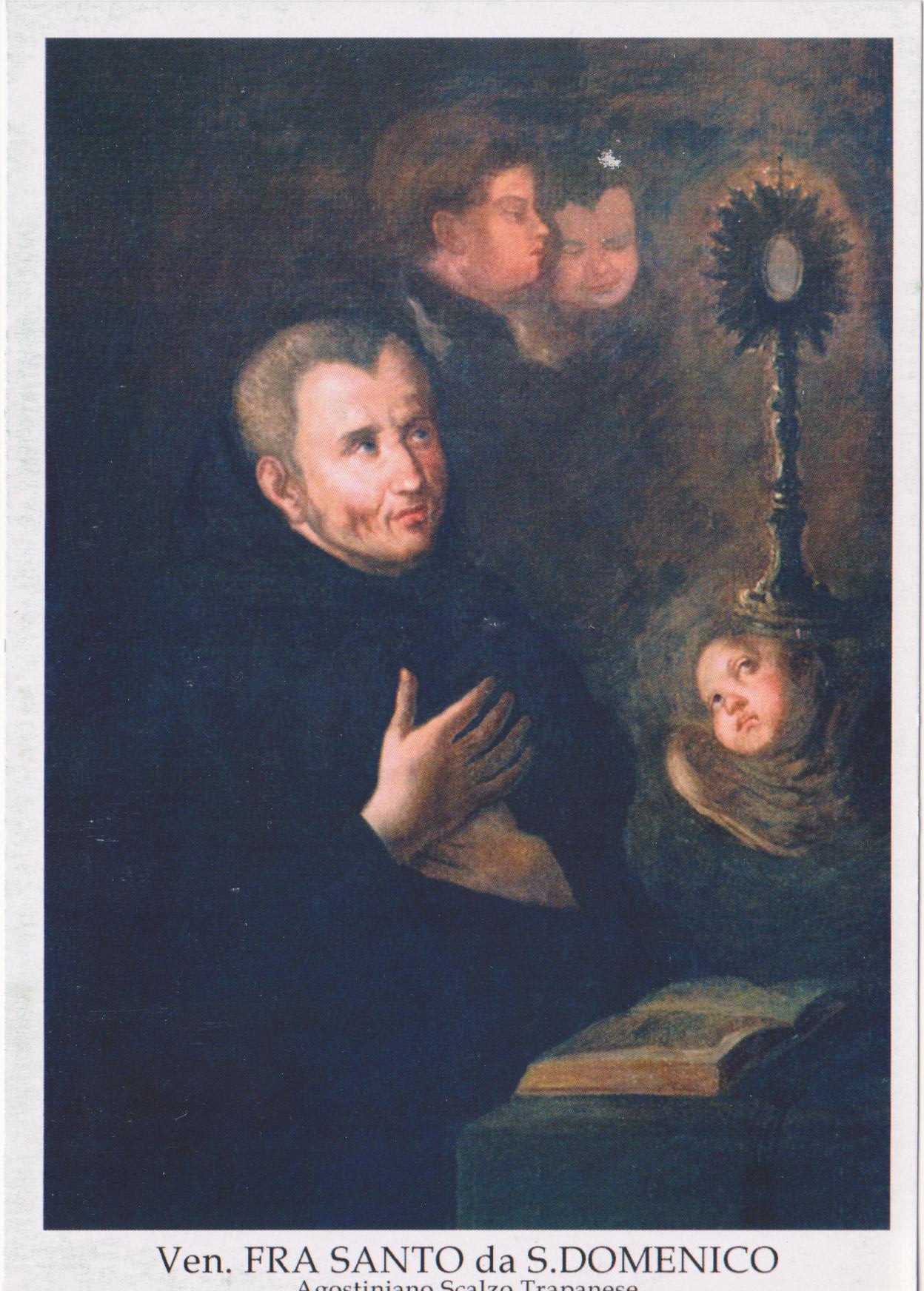 Il Venerabile Fra Santo da S. Domenico nacque a Trapani il 5 agosto 1655 e prese l´abito religioso a Marsala nel convento dell’Itria il 21 maggio 1684. Divenuto professo, tornò a Trapani, dove si applicò alla preghiera e meditazione, nella quale tra giorno e notte trascorreva sino a 14 ore.