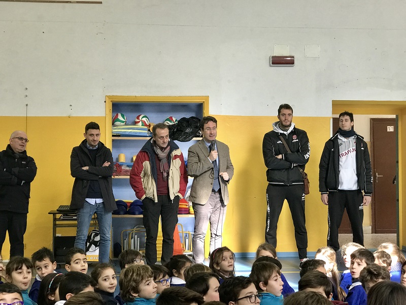 Mercoledì 18 gennaio, alle 11.00, presso la Palestra dell’Istituto Comprensivo Giuseppe Mazzini in via Cesarò ad Erice Casa Santa, si è svolta una tappa importante del progetto “EricèBatticuore, Lotta per la vita”, campagna di sensibilizzazione per la diffusione dell’utilizzo di defibrillatori negli impianti sportivi, nelle strutture scolastiche e non solo, che il Comune di Erice sta realizzando in questi mesi. La Pallacanestro Trapani, che ha aderito con entusiasmo all’iniziativa, ha donato al Dirigente Scolastico dell’Istituto G. Mazzini un defibrillatore che verrà collocato nella palestra della scuola. All’incontro partecipato, oltre al dirigente dell’istituto, il Sindaco di Erice Giacomo Tranchida, il general manager della Pallacanestro Trapani Nicolò Basciano ed una rappresentanza della squadra, nello specifico Andrea Renzi e Kenneth Viglianisi.