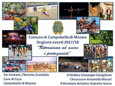 Il sindaco Giuseppe Castiglione e l’assessore alla Cultura Antonella Moceri invitano le associazioni locali e i cittadini a partecipare alla prima assemblea pubblica promossa dal direttore artistico del Comune di Campobello Gianvito Greco, che si terrà sabato 18 febbraio, alle ore 15, nell’ex chiesa dell’Addolorata, al fine di programmare il palinsesto delle manifestazioni artistico-culturali del 2017. All’incontro sono invitati anche gli operatori culturali, nonché i gestori di locali, bar, ristoranti, i giovani e tutti coloro che vorranno prendere parte, proponendo idee e iniziative, a questo importante momento di partecipazione attiva e di condivisione che ha l’obiettivo di dare vita a una nuova stagione d’intrattenimento e di cultura per la città di Campobello di Mazara.