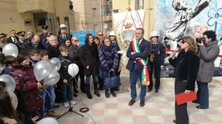 Si è svolta stamattina, presso la Piazzetta Antonino Via nel quartiere di Erice Raganzili, la cerimonia di scopertura del murales dedicato alla memoria di Nino Via, il giovane trapanese ucciso nel corso di un tentativo di rapina nel 2007. IL GIARDINO DI NINO VIA è il titolo del progetto Murales promosso dal Comune di Erice, realizzato dall’Arch. Arianna Maggio in collaborazione con gli studenti della Scuola Media Antonino De Stefano e del I° Circolo didattico Giovanni Pascoli di Erice. Oggi la cerimonia di scopertura dell’opera alla presenza di tante autorità militari, civile e religiose. Il progetto era stato presentato nello scorso mese di aprile ed è stato realizzato nei mesi scorsi avviando laboratori didattici con le due scuole ericine che hanno aderito all’iniziativa, la Scuola Media Antonino De Stefano ed il I° circolo G. Pascoli di Erice, nei locali del primo piano del nuovo plesso scolastico “Giuseppe e Salvatore Asta”, recentemente completato. I pannelli che compongono il Murales sono stati decorati a mano nei laboratori e successivamente collocati sul prospetto di una palazzina all’interno di uno spazio urbano che negli anni è stato oggetto di riqualificazione da parte dell’amministrazione comunale che ha creato in uno spazio degradato un’area per i bambini ricca di colori, di giochi, di verde, di luce. Alla manifestazione odierna, che è stata organizzata dal Comune di Erice e dall’associazione “Nino Via eroe contemporaneo” sono intervenuti oltre ai familiari di Nino Via, anche il Sindaco di Erice Giacomo Tranchida, il vice sindaco Daniela Toscano, il Vescovo di Trapani Pietro Maria Fragnelli. Padrino d’eccezione l’attore Ernesto Maria Ponte che ha tagliato il nastro inaugurale.