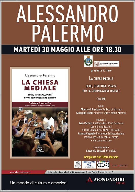 “La Chiesa Mediale. Sfide, strutture, prassi per la comunicazione digitale”, prima opera letteraria di Don Alessandro Palermo, giovane sacerdote, attuale vice parroco in Chiesa Madre, verrà presentata alla cittadinanza marsalese, martedì 30 Maggio - alle ore 18.30 – nella Sala Conferenze del Complesso Monumentale di San Pietro. L’iniziativa culturale, che si avvale del patrocinio dell’Amministrazione comunale, avrà inizio con i saluti del Sindaco Alberto Di Girolamo e di Padre Giuseppe Ponte, arciprete di Marsala. A presentare il libro, edizioni Paoline 2017, sarà don Ivan Maffeis, Direttore dell’Ufficio Nazionale per le Comunicazioni Sociali e Portavoce della Conferenza Episcopale Italiana, e la professoressa Gianna Cappello, Presidente dell’Associazione italiana per l’educazione ai media e alla comunicazione. I lavori saranno moderati dalla giornalista Antonella Lusseri. “La Chiesa Mediale. Sfide, strutture, prassi per la comunicazione digitale” si pone l’obiettivo di mostrare quanto oggi sia diventato necessario, per la comunicazione della Chiesa, rendersi presente e operante nello scenario dei social media. Facendo leva sulla visione antropologica (Ceretti-Padula) che i “media siamo noi” viene evidenziato perché la Chiesa è anch’essa una realtà mediale, i media strutturano l’azione ecclesiale e possono diventare occasione per avviare un’efficace evangelizzazione, oltre che un’efficiente trasmissione di contenuti informativi. Per poter, però, realizzare tutto questo occorre istituire e rendere operativi (riorganizzandoli alla luce delle dinamiche digitali) gli Uffici diocesani per le comunicazioni sociali. Vengono, quindi, indicate le principali dinamiche digitali con cui poter strutturare un progetto di comunicazione nei social network. Questo volume, destinato agli addetti ai lavori, si rivolge anche a quanti credono che la comunicazione sia essenza stessa della vita, opportunità di condivisione e ascolto appassionato.