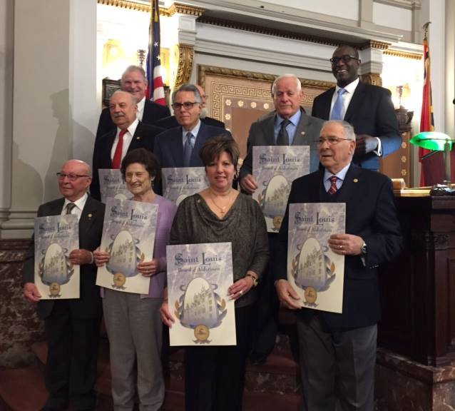 Nella foto i rappresentanti del comitato organizzatore, con gli attestati concessi dal Sindaco e dalla giunta municipale della città di Saint Louis.