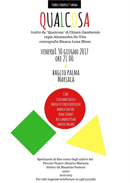 Si svolgerà venerdì 30 giugno dalle ore 21 – e fino alle ore 22 circa – al Baglio Palma, in Contrada Bambina 16, il primo spettacolo teatrale del "Piccolo Teatro Abusivo Marsala”, interamente interpretato dai piccoli attori del laboratorio di recitazione per bambini del T.A.M. dal titolo "Qualcosa", tratto dall´omonimo libro di Chiara Gamberale. Si tratta di una favola moderna i cui protagonisti della storia, attraverso le sfide che la vita mette loro davanti, dovranno fare i conti con l´estremismo dei propri sentimenti che li costringe a mostrarsi "troppo" e con tutti i mezzi e canali per avere la certezza di esistere. Ma il premio in fondo alla favola rimane sempre lo stesso, ed è la felicità. Felicità che passa attraverso la costruzione dell´Identità, che non possiamo delegare agli altri. Protagonisti dell’evento saranno sei bambini, dai 6 agli 11 anni, che hanno seguito il laboratorio teatrale con passione ed entusiasmo, intervenendo anche sul testo e collaborando, assieme alla regista, Alessandra de Vita, che ha coordinato lo stesso laboratorio, alla definizione del lavoro teatrale, il cui obiettivo era quello di uscire dagli schemi delle recite per bambini. Lo spettacolo, consigliato dai bambini per i bambini, si avvale di due coreografie di Bianca Luna Misso. Questi i nomi dei piccoli protagonisti: Andrea Lentini, Alma Linares, Alessandro Pegno, Samira Ungaro, Maria Vittoria Bertocchi e Giovanni Basile. L’ingresso è gratuito. Per Info: 348/3727782