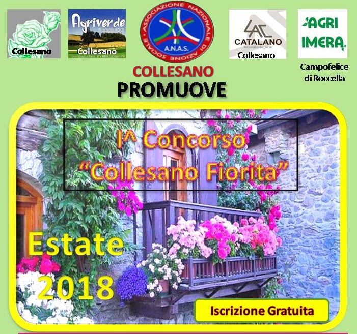 I^ Concorso "Collesano Fiorita" promosso dall´A.N.A.S. Collesano. Il Concorso nasce principalmente dalla necessità di migliorare in modo naturale e semplice il nostro paese attraverso il decoro floreale di spazi verdi, balconi e davanzali e quant’altroprospetti all’esterno dell’abitazione. L’iniziativa intende stimolare la comunità tutta a contribuire al miglioramento della qualità della vita e dell’ambiente urbano nonché a svolgere un ruolo educativo e di sensibilizzazione nei confronti del territorio d’appartenenza.Pertanto, con la realizzazione degli allestimenti floreali, attraverso il contributo delle famiglie e il coinvolgimento di tutta la cittadinanza, si vuole promuovere la cultura della valorizzazione del verde e del patrimonio ambientale esistente.A tal fine l’A.N.A.S. Collesano con alcuni esercenti collesanesi e non, contribuiranno, assegnando ad ogni partecipante una piantina di geranio pendente come simbolo del decoro floreale e stimolo verso una “cultura del bello”.si ricord che l´iscrizione avrà termine il 30 novembre 2017, ai primi 50 partecipanti verranno consegnati 50 piantine di geranio. il concorso avrà inizio ai primi mesi dell´anno nuovo e la premiazione avverrà nel mese di Luglio 2018. Ai primi tre classificati con giudizio della commissione giudicatrice buoni acquisto in piu terga artistica realizzata appositamente dalLaboratorio arte catalano, in piu verrà premiato il primo concorrente con votazione like attraverso apposito profilo fb. anche in questo caso riceverà un buono acquisto piu la targa . per consegna la richiesta di adesione presso la sede A.N.A.S. sita in Via Tommaso Villa n. 1 per inf 3208233570 e mail anascollesano@libero.it