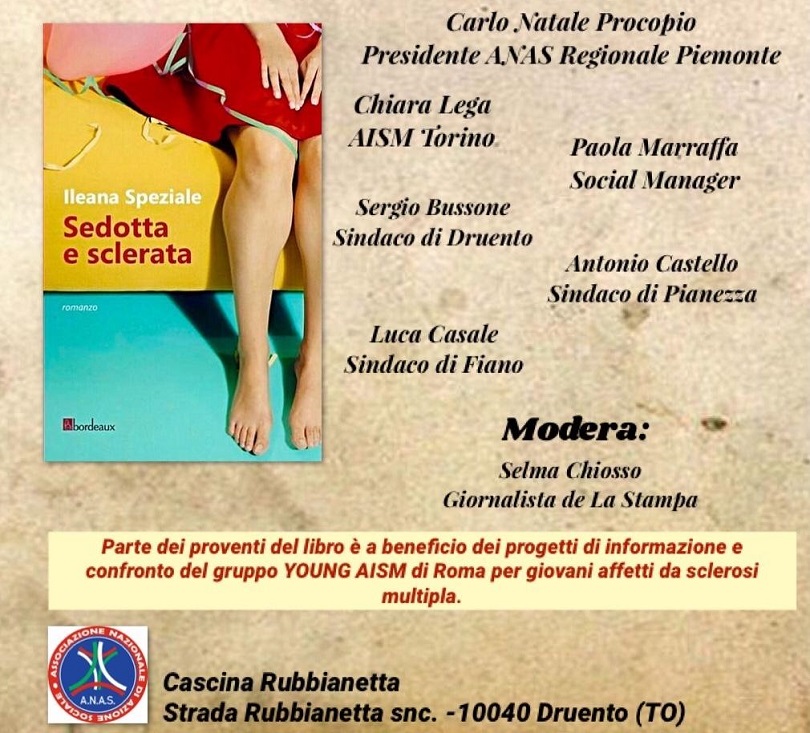 Sedotta e sclerata è il titolo del romanzo di Ileana Speziale, edito da Bordeaux Edizioni, che à stato presentato giovedì 17 maggio 2018, alle ore 18:00 presso Cascina Rubbianetta – Parco La Mandria, Strada Rubbianetta snc, 10040 Druento (TO). «Si rendeva conto di non avere davanti a sé un nemico leale ma un avversario subdolo. Un avversario che ha un nome ma non una forma ed è fatto solo dei segni che lascia. Segni indelebili. Ecco perché l’ago della bilancia, l’unica arma a disposizione nella partita della sua vita, era lei stessa.» Ileana Speziale (Roma 1989) è giornalista pubblicista. Da sempre impegnata in campagne di sensibilizzazione per l’affermazione dei valori umani e il rispetto della dignità dell’uomo. Collabora assiduamente con l’AISM (Associazione Italiana Sclerosi Multipla), da quando all’età di vent’anni ha scoperto di essere affetta da sclerosi multipla. La scrittrice nel suo romanzo, attraverso simpatici aneddoti, trame coinvolgenti e stravaganti intrighi, intende raccontare un pezzo di vita vissuta: il “passionale” mondo di Emily. Emily è una giovane ventenne impegnata durante tutto il racconto a trovare il giusto equilibrio tra amore, passione, trasporto emotivo, e amicizia finché una sfrontata realtà la metterà di fronte ad una patologia che tenterà di cambiare la sua vita. Questo progetto editoriale vuole essere uno strumento di sensibilizzazione, lontano da luoghi comuni, in particolare per i giovani che sono i più colpiti da questa patologia, nello stesso tempo vuole essere un veicolo di emozioni e di messaggi positivi da trasmettere attraverso questo percorso romanzato. Alla presentazione prenderà parte, oltre all’autrice Ileana Speziale, Carlo Natale Procopio Presidente regionale Piemonte ANAS Italia, Chiara Lega rappresentante AISM Torino, Paola Marraffa Social Manager, Sergio Bussoni Sindaco di Druento, Antonio Castello Sindaco di Pianezza, Luca Casale Sindaco di Fiano. Modera la Dott.ssa Selma Chiosso giornalista de La Stampa. Parte dei proventi del libro è a beneficio dei progetti di informazione e confronto del Gruppo Young AISM Roma per i giovani con sclerosi multipla (FB AISM ROMA).