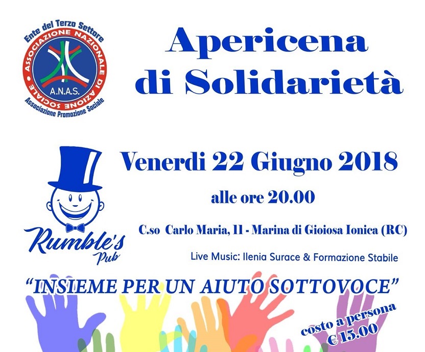 L’ANAS (Associazione Nazionale di Azione Sociale) di Promozione Sociale, attraverso la presidenza regionale Calabria organizza la terza edizione dell´apericena di solidarietà.