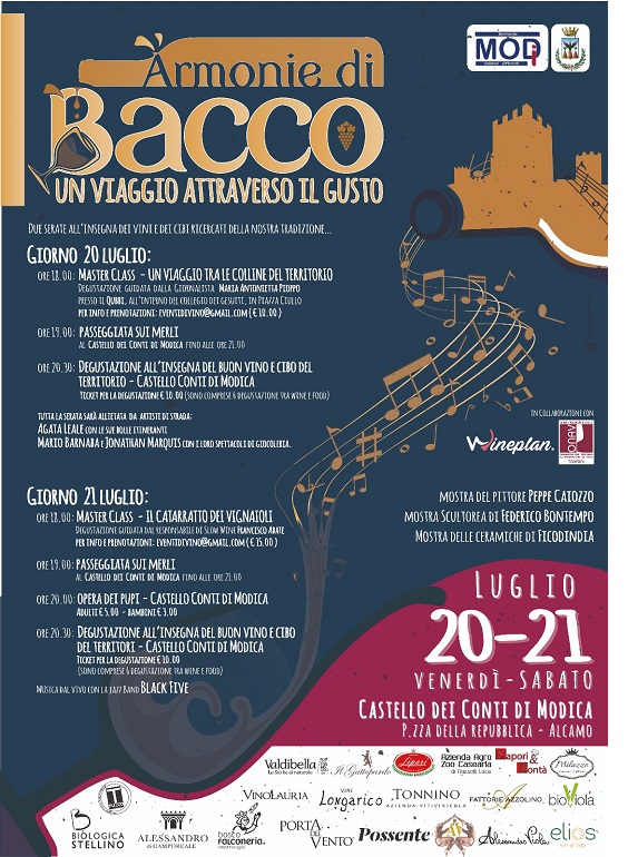 Nell’ambito delle manifestazioni previste nel cartellone di Alcamo d’Estate 2018, venerdì 20 e sabato 21 Luglio, presso il Castello dei Conti di Modica, avrà luogo la terza edizione della Manifestazione “Armonie di Bacco” volta a promuovere le eccellenze enogastronomiche ed artistiche del nostro territorio.