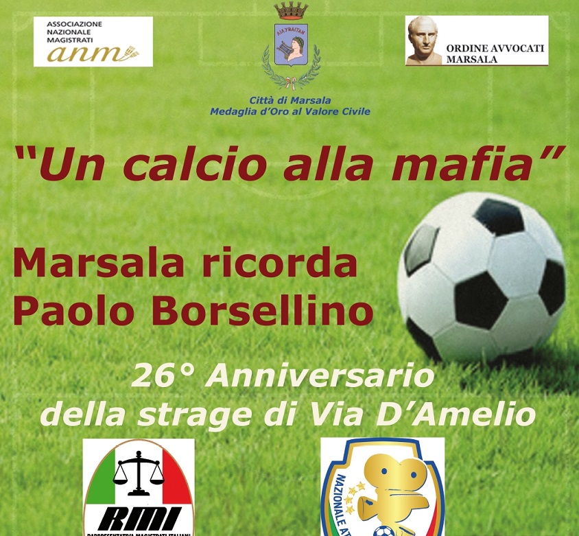 Amministrazione Comunale, Associazione Nazionale Magistrati e Ordine Avvocati di Marsala insieme per “Un calcio alla mafia”. L´appuntamento, nel 26° Anniversario della Strage di Via D´Amelio, è per domani – Giovedì 19 Luglio – allo Stadio Municipale (ore 20:45). Qui si affronteranno la Nazionale Magistrati e la Nazionale Attori, per un incontro che – in memoria di Paolo Borsellino, Emanuela Loi, Agostino Catalano, Claudio Traina, Vincenzo Li Muli e Walter Eddie Cosina – vuole ricordare il loro sacrificio per la legalità, contro ogni mafia. Patrocinato dalla Lega Calcio professioni Serie B - rappresentata dal dr. Francesco Vivacqua - madrina dell´evento è Chiara Esposito (finalista a Miss Italia 2016 e “professoressa” ne L´Eredità della RAI). In campo la rappresentativa di Giudici/Procuratori/Commissari provenienti da tutta Italia e molti personaggi del mondo del Cinema/Televisione. Questi i convocati delle due squadre: