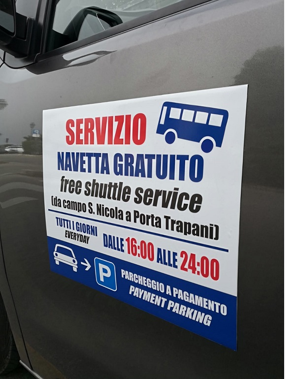 A supporto del servizio, per consentire agli utenti di raggiungere il centro storico del borgo medioevale, è operante anche un servizio navetta gratuito con 2 mezzi di capacità di 9 posti, che ogni giorno, fino al prossimo 5 settembre, dalle ore 16,00 alle ore 24,00, nella stessa fascia oraria di apertura del parcheggio, collegano il campo di San Nicola con Porta Trapani. Vantaggiosa anche la tariffa applicata che ammonta ad 1 € per ogni ora di sosta rispetto ai 2 € delle altre aree del centro storico.