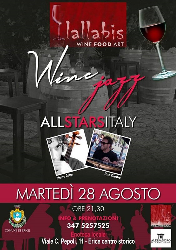 Dopo il grande successo ottenuto da Lallabis, in occasione degli eventi previsti nel calendario “Wine Jazz”, l’associazione enogastronomica e culturale ospita nella location ericina “Enoteca Locale” un musicista di fama internazionale. Ad esibirsi, questa volta, è il pianista e compositore Luca Filastro considerato fra i massimi esponenti dello stile Stride Piano e Mauro Carpi, già ospite d’eccellenza di Lallabis. L’evento previsto per martedì prossimo avrà inizio a partire dalle 21,30 e prevede altre esibizioni a sorpresa. Musicisti, richiamati dalla comune volontà di condividere e racchiudere la magia della musica, si sono dati appuntamento presso l’“Enoteca Locale” (in Via C. Pepoli, 11) per presenziare ad un appuntamento imperdibile. Nel corso dell’evento è prevista la degustazione di un calice di vino incluso nel costo dell’offerta di Lallabis. Per partecipare alla serata occorre prenotare contattando Mariella Bonfiglio, presidente dell’associazione al num. 347 5257525.