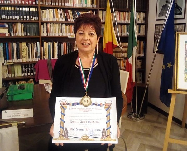 Presidente BCsicilia di Isola delle Femmine Agata Sandrone insignita dall’Accademia Nazionale Lettere, Arti e Scienze ´Ruggero II´