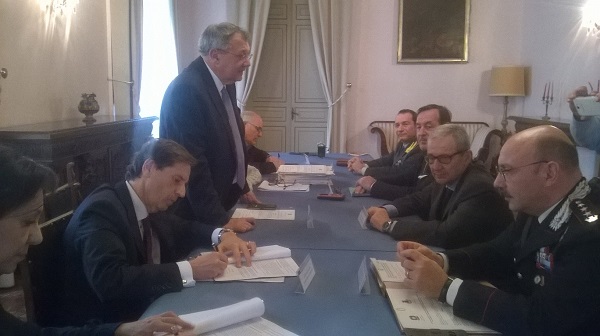 In data odierna, presieduta dal Prefetto di Trapani. dott. Darco Pellos si è tenuta una Riunione del Comitato Provinciale dell´Ordine e della Sicurezza Pubblica alla quale hanno partecipato il Procuratore della Repubblica di Marsala. dott. Vincenzo Pantaleo, i vertici delle Forze di Polizia e i Componenti della Commissione Straordinaria del Comune di Castelvetrano. dott. Salvatore Caccamo e dott.ssa Maria Concetta Musca, per la sottoscrizione dell’ “Intesa per la legalità finalizzata alla prevenzione dei tentativi di infiltrazione della criminalità organizzata nell´attività urbanistico - edilizia”.