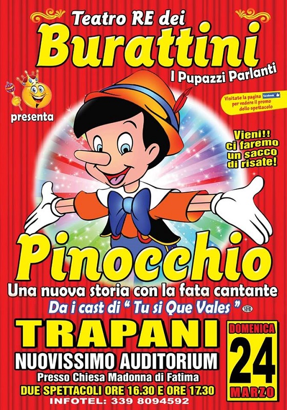 Per la prima volta presso il nuovissimo auditorium Chiesa Madonna di Fatima arriva Pinocchio, lo spettacolo comico di burattini adatto a tutti i bambini.