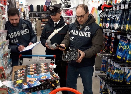 I Carabinieri della Compagnia di Castelvetrano, con il supporto specialistico dei colleghi del NAS di Palermo, hanno eseguito un accesso ispettivo presso alcuni esercizi commercialial fine di scongiurare l’immissione nel mercato di prodotti non conformi alla normativa di settore, specialmente in vista dei tradizionali festeggiamenti previsti per il Capodanno. Nello specifico, in un negozio di prodotti cinesi, sono stati rinvenuti e sottoposti a sequestro amministrativo oltre 1074 articoli tra cui anche diversi artifici pirotecnici e decorazioni natalizie e di vario genere, in quanto privi delle etichette contenenti le informazioni minime obbligatorie ed in lingua italiana in difformità delle prescrizioni previste dal Codice del Consumo.Il valore della merce sequestrata ammonta a circa 3.300 euro, mentre le sanzioni amministrative elevate al gestore dell’esercizio commerciale sono state pari a 1030 euro. La presenza di articoli privi del marchio di garanzia CE e delle informazioni minime in termini di istruzioni d’uso e precauzioni, rappresentano - soprattutto per i bambini - un pericolo per la salute e l’incolumità, dovuto al contatto con materiali di scarsa qualità e di cui si sconoscono composizione e origine. La presente operazione è solo l’ultima, in ordine di tempo, di una serie di controlli che sono stati svolti dai Carabinieri in tutta la provincia trapanese al fine di tutelare la salute e la sicurezza dei cittadini