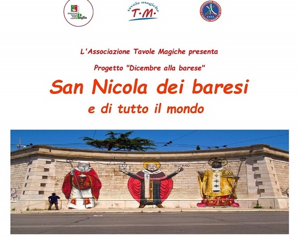 Oggi piu che mai serve sostenere l´azione sociale e culturale all´interno di quello che sono le norme imperative DPCM per prevenire la diffusione del COVID, ed è con questo spirito che la Presidenza dell´ANAS Puglia, quale articolazione territoriale sostiene e supporta l´iniziativa dell´Associazione Tavole Magiche che ha progettato "dicembre Barese" San Nicola dei baresi e di tutto il mondo; racconti, poesia e musica spettacolo in tre lingue: barese, italiano e georgiano.