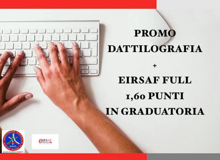 Anas Piemonte (Associazione Nazionale di Azione Sociale) in collaborazione con Irsaf (Istituto di Ricerca Scientifica di Alta Formazione) offre un pacchetto promozionale destinato al personale ATA in vista dell´aggiornamento delle graduatorie. Il pacchetto, costituito dal Passaporto informatico Eirsaf Full + Corso di dattilografia, ha il costo scontato di 179 €.