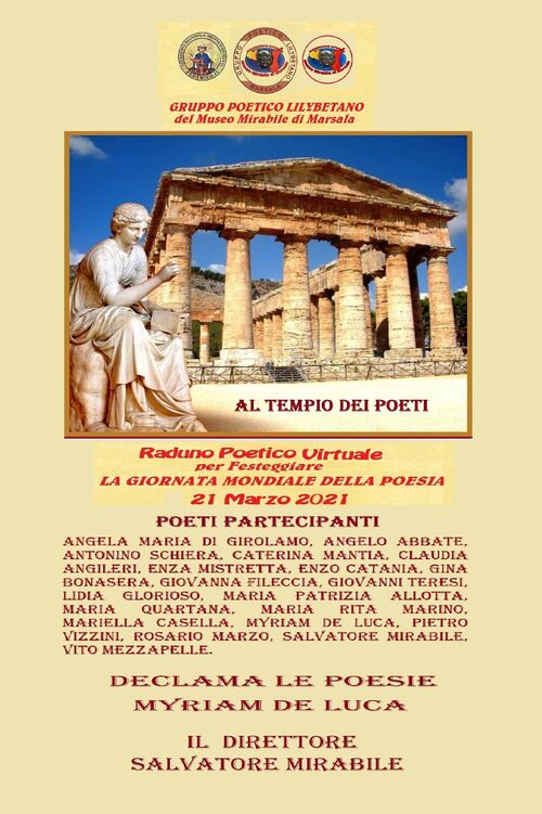 All´ invito hanno risposto i poeti Angela Maria Di Girolamo, Angelo Abbate, Antonino Schiera, Caterina Mantia, Claudia Angileri, Enza Mistretta, Enzo Catania, Gina Bonasera, Giovanna Fileccia, Giovanni Teresi, Lidia Glorioso, Maria Patrizia Allotta, Maria Quartana, Maria Rita Marino, Mariella Casella, Pietro Vizzini, Rosario Marzo, Vito Mezzapelle e Myriam De Luca.