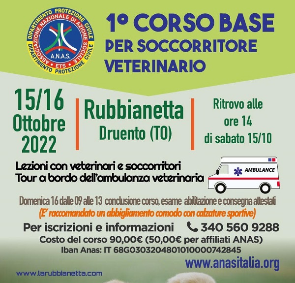 Con questo spirito il 15 e il 16 ottobre prossimi la Protezione civile della Rete Anas Italia organizza il primo corso di soccorritore veterinario. Due giorni al parco della Rubbianetta (Druento, vicino a Torino) dal primo pomeriggio di sabato sino alle 14 della domenica. “Abbiamo preso spunto dalla meravigliosa esperienza di una odv nostra affiliata, la Croce Gialla di Genova”, spiega Claudio Cugusi, presidente della Protezione civile di Anas, “e abbiamo pensato di estendere l’esperienza a tutti gli enti del terzo settore interessati a costituire una rete del soccorso veterinario. E’ incredibile quanta attenzione ci sia verso questo tema ma è un fatto positivo, che intendiamo valorizzare portando il nostro modello di corso in tutta Italia già a partire dal prossimo novembre”.