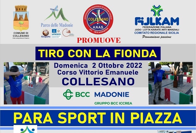 Il mese di ottobre per la rete associativa Anas (Associazione Nazionale di Azione Sociale) inizia con una serie di manifestazione su tutto il territorio nazionale. domenica 2 ottobre a Collesano in Corso Vittorio Emanuele si terrà il tiro con la fionda organizzato da Anas Collesano. Il programma prevede una serie di iniziative. la giornata inizia con una esibizione di arti marziali di judo e aikido che avrà inizio alle 10:30 fino alle ore 13:00. Per l´occasione interverrà anche il maestro Salvatore Livigni, presidente regionale della FIJLKAM. dalle 13:30 fino alle 15:00 è stata programmata una degustazione dei prodotti tipici madoniti. Alle 15:30 avrai inizio l´esibizione di tiro con la fionda che vede diverse associazioni confrontarsi.