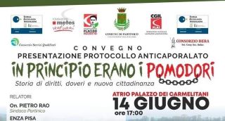 Il 14 giugno alle ore 17.00 presso l’atrio del Palazzo dei Carmelitani a Partinico in c/so Dei Mille 252 si terrà il convegno: “IN PRINCIPIO ERANO I POMODORI. STORIA DI DIRITTI, DOVERI E NUOVA CITTADINANZA”. Si parlerà in maniera diffusa del fenomeno dello sfruttamento lavorativo e del caporalato in danno soprattutto ai soggetti che presentano maggiori fragilità come i migranti, analizzandone cause e proponendo rimedi. Nel corso del convegno verrà sottoscritto dagli organizzatori un protocollo d’intesa per approntare, ciascuno per la propria competenza ed in stretta collaborazione fra tutti, attività e strumenti idonei a contrastare tale fenomeno. Organizzano: Comune Partinico, Fondazione Metes, Flai Cgil Palermo, Osservatorio Nazionale Placido Rizzotto, Consorzio Hera s.c.s