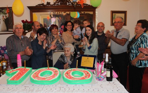 Marsala ha, da ieri, una nuova “centenaria”. A distanza di poco più di un mese da Agata Patti, un’altra “nonnina” ha tagliato ieri il traguardo delle cento primavere. E’ Antonina Piccione, vedova di Vincenzo Danubio, per tutti nella zona “Nonna Ninetta”, alla quale il sindaco Giulia Adamo, impedita all’ultimo momento da un improrogabile impegno istituzionale, ha fatto pervenire ieri pomeriggio, nella sua abitazione di contrada Cozzaro 163, una targa-ricordo dell’amministrazione comunale. A stringersi per i festeggiamenti attorno alla neo-centenaria i tre figli: Natale (di 73 anni), Antonia (70) e Pino (65), con i rispettivi nipoti Antonina, Vincenzo e Antonia Paola, i quattro pronipoti, nonch´ parenti, amici e l’intero vicinato, che non hanno voluto mancare all’evento. Al termine, l’immancabile foto di tutti i familiari attorno a “Nonna Ninetta”, con la maxi-torta preparata per l’occasione.