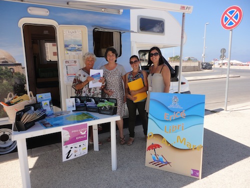 Sta riscontrando il favore del pubblico l´iniziativa "Libri da...mare" che consente il prestito di libri della biblioteca "Carvini" di Erice lungo la spiaggia di San Giuliano. Il servizio si svolge ogni lunedì e ogni giovedì dalle 10,00 alle 14,00 ed è curato dalla Pro Loco di Erice che si avvale del Camper-biblioteca di proprietà del Comune. Oltre 200 volumi, dai best sellers ai libri per bambini ai classici, sono a disposizione di quanti amino abbinare al relax una buona lettura. Nella foto sono ritratte, con l´Assessore alla Cultura avv. Laura Montanti, le volontarie della Pro Loco di Erice Gabriella Giambalvo e Rosanna Martines, insieme ad una lettrice straniera.