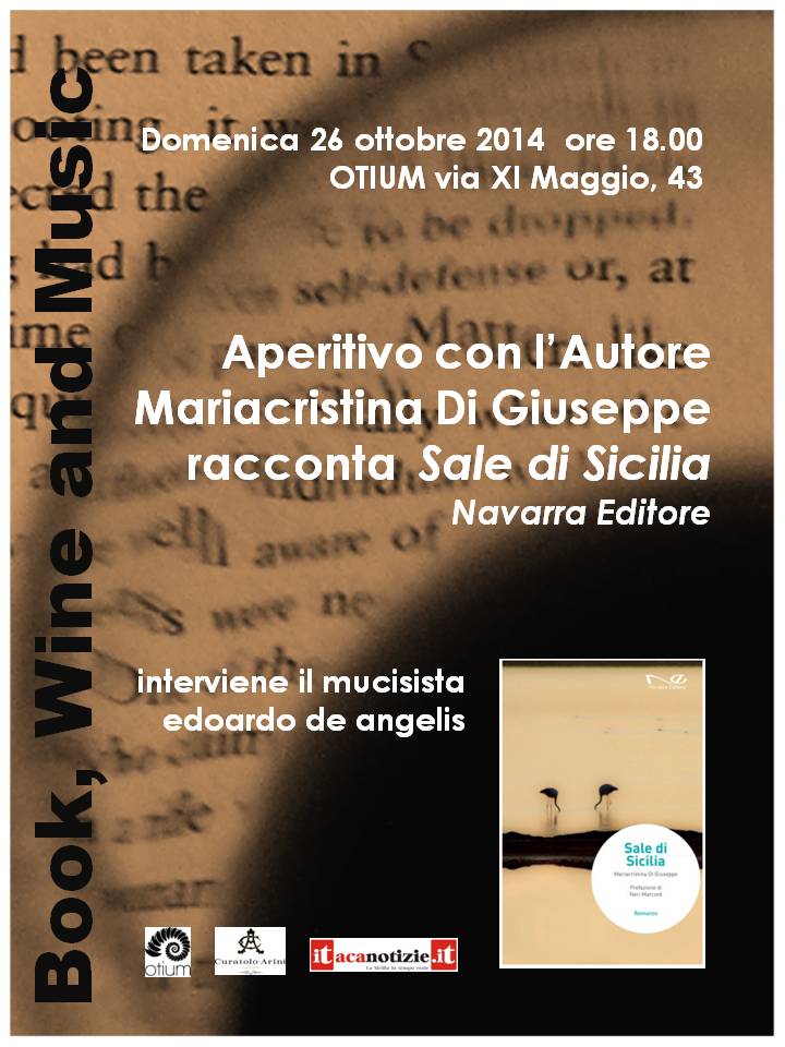Lunedì 27 ottobre alle ore 18:00 a Trapani nel cuore del centro storico a Palazzo San Rocco (via Turretta, 12) sarà presentato il romanzo Sale di Sicilia (Navarra Editore 2014) di Maria Cristina Di Giuseppe. Ambientato in una Palermo che Neri Marcorè definisce meravigliosa e brutale, troppo spesso oltraggiata, contraddittoria nella sua bellezza e decadenza, ricolma di tesori, nascosti o alla luce del sole, di cui si ha nostalgia già nel presente, Sale di Sicilia è l’opera prima della talentuosa Mariacristina Di Giuseppe, già autrice di testi per Milva, Edoardo De Angelis, Amedeo Minghi, Neri Marcorè, Antonella Ruggiero