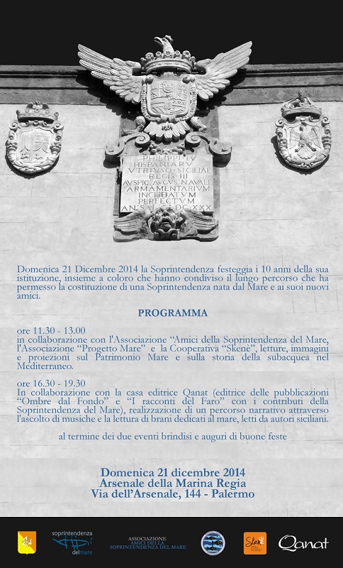 Domenica 21 Dicembre 2014 la Soprintendenza festeggia i 10 anni della sua istituzione, insieme a coloro che hanno condiviso il lungo percorso che ha permesso la costituzione di una Soprintendenza nata dal Mare e ai suoi nuovi amici.