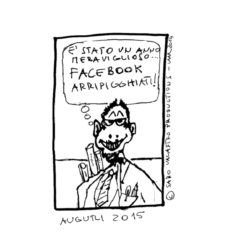 GLI AUGURI DI VITO MANCUSO CON UNA GUSTOSA VIGNETTA CARICATURA SULLA CAMPAGNA DI FACEBOOK SULLA ESPERIENZA PERSONALE (E NON SOLO) RACCOLTA NELL´ANNO