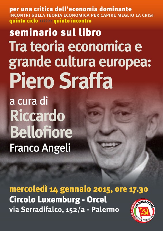 Palermo 13 gennaio - Si svolgerà domani mercoledì 14 gennaio ore 17:30 il quinto incontro del ciclo "Per una critica dell´economia dominante" il ciclo di incotnri sulla teoria economica per capire meglio la crisi attuale. Nell´appuntamento di domani si discuterà del libro "Tra teoria economica e grande cultura europea" di Piero Sraffa, a cura di Riccardo Bellofiore - Franco Angeli Editore