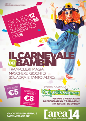 CASTELVETRANO AREA14 - Un Carnevale dei bambini da non perdere ad Area 14 con Pupilandia